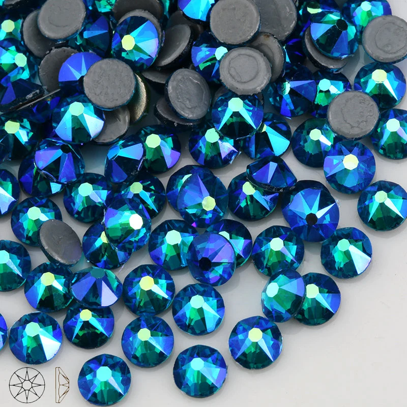 QIAO Аквамарин AB 8 большой + 8 маленький новый граненный бисер граней горячий задний камень для горячей фиксации стразов одежды стиль горный хрусталь, 1440 шт./пакет