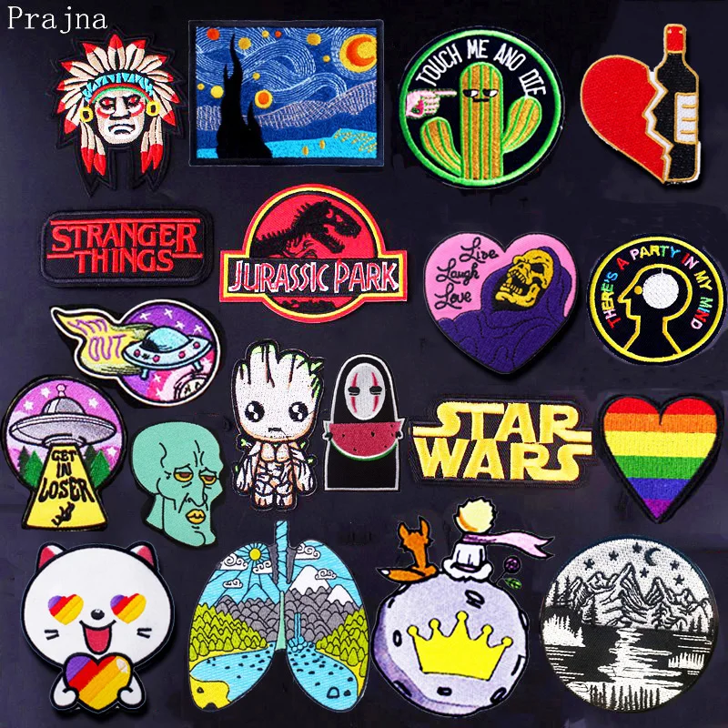 Prajna хиппи череп странные вещи патч железо на вышитые патчи для одежды полосы DIY панк Рок патч металлический космический парч