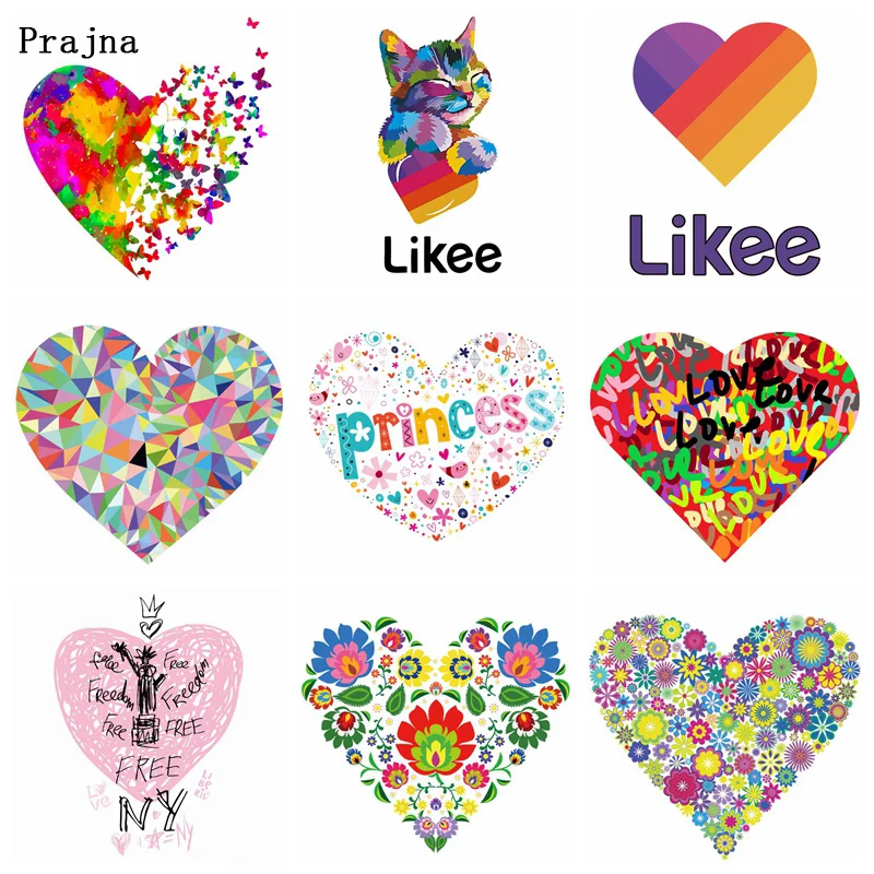 Prajna Любовь Красочные теплопередачи для одежды печать железа на виниловой передачи Likee App переносные термонаклейки сердечный патч