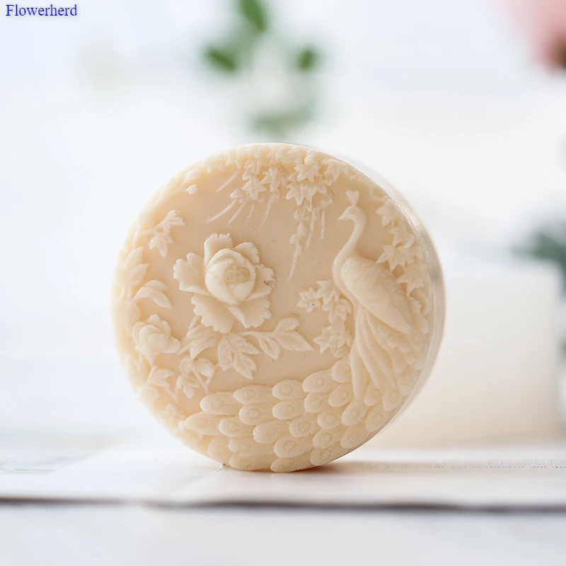 Круглые 3d силиконовые формы Павлин цветы шаблон гибкое Силиконовое мыло форма для мыла Сделай Сам изготовление поставки плесень для гипса ...