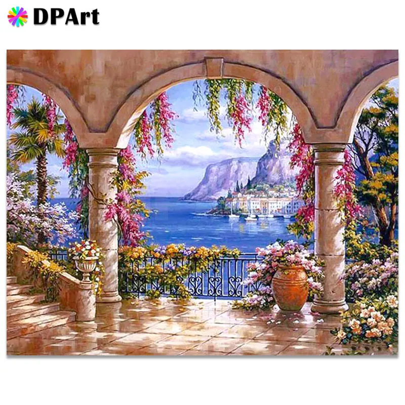 Алмазная картина 5D полный квадратный/круглый дрель Приморский замок сад кристальная вышивка картина вышивка крестиком Мозаика картина M923