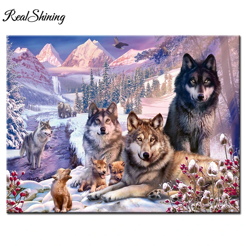 Алмазная картина с изображением волка, полностью квадратная/круглая Алмазная вышивка, Рождественский пейзаж Z0072
