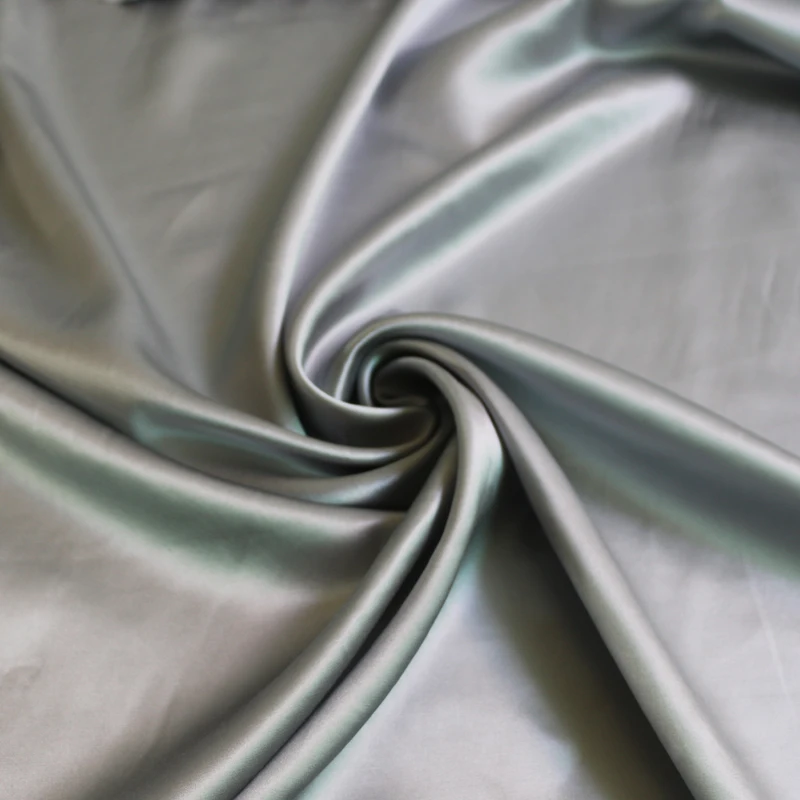 100 см * 114 см Натуральная шелковая хлопковая ткань шармёз серебристо-серый материал платья приятный глянцевый