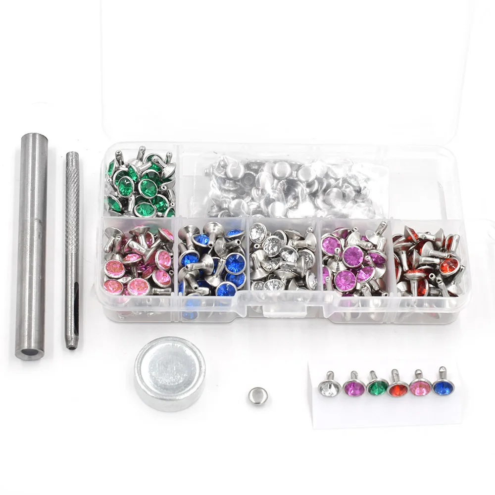 Металлические заклёпки 240 шт. + инструмент для ручной установки. Акриловые Алмазные кнопки. Защелки. Цветные декоративные ногти. Заклепки с алмазами