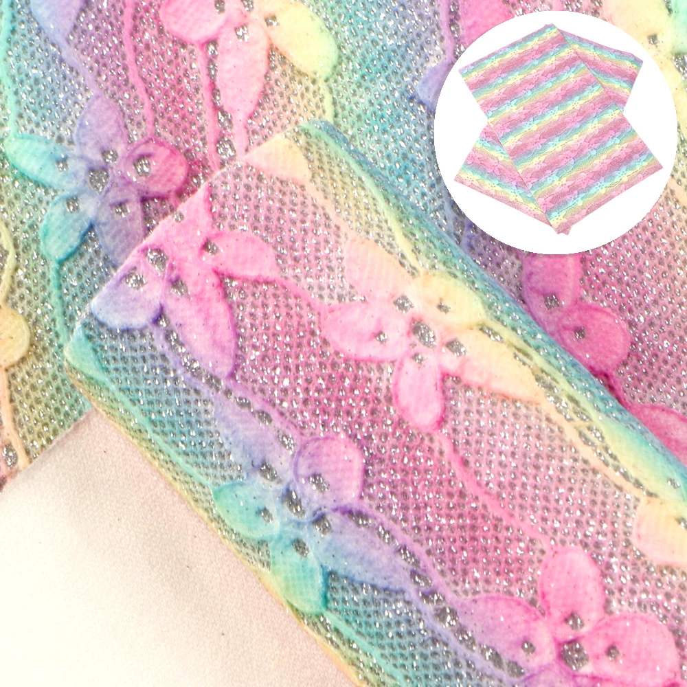 20*34 см Синтетическая кожа Радуга Блеск Кружева Дизайн искусственная кожа листы DIY материалы ручной работы кожзам ткань, 1Yc8756
