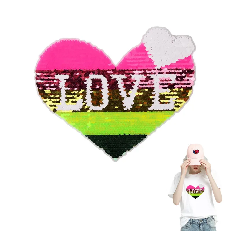 Женская футболка в полоску с блестками и нашивкой 230 мм LOVE Heart Deal With It панк байкерские нашивки для одежды Diy наклейки странные вещи