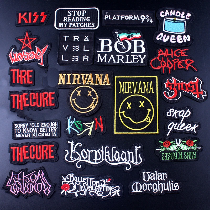 Pulaqi Nirvana тканевые пластыри металлический полоса патч, вышитые патчи железо на Пластыри для одежды рок полосы значки аппликации полоса