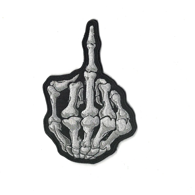 Палец черепа Скелет Вышивка патч железа на Нашивки панк-рок Аппликация Этикетка Знак Байкер Нашивки для одежды