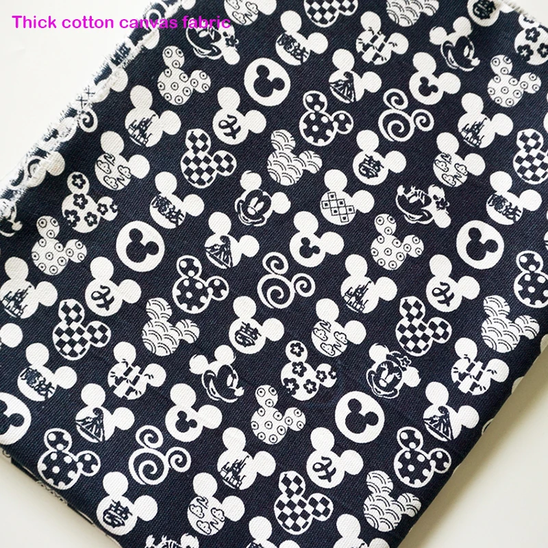 Плотная черная/белая холщовая ткань сумка с рисунком Микки-Мауса голова холщовая хлопковая ткань диван шитье пэчворк DIY скатерть шириной 143 ...