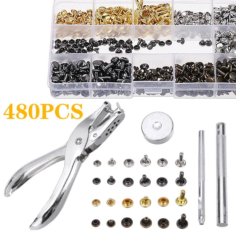 480 шт./компл. Кожаные ботильоны на заклепках с двойными Кепки заклепки металлические крепления с плоскогубцы Набор для рукоделия застежка-молния Пресс кнопка инструмент для ремонта