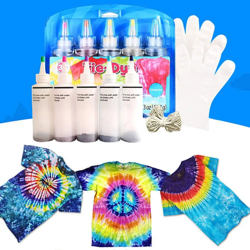 5 цветов галстук-краситель комплект хлопок белье одежда красители нетоксичные Сделай Сам модный краситель набор краски цвета искусства одежда для красителей краски