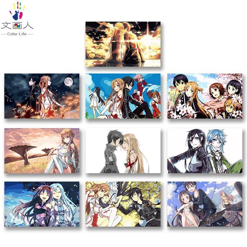 DIY красителей фотографии по номерам с цветами Меч Искусство Интернет алисизация аниме картинка Рисунок Живопись по номерам каркасный дом