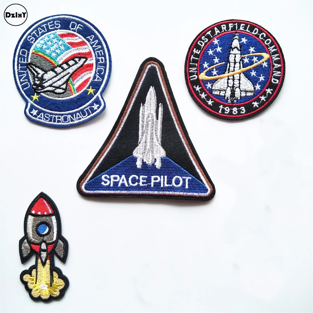 1 шт космический челнок вышитые патчи железные патчи для одежды полосатые наклейки для поделок ракеты значки @ Q