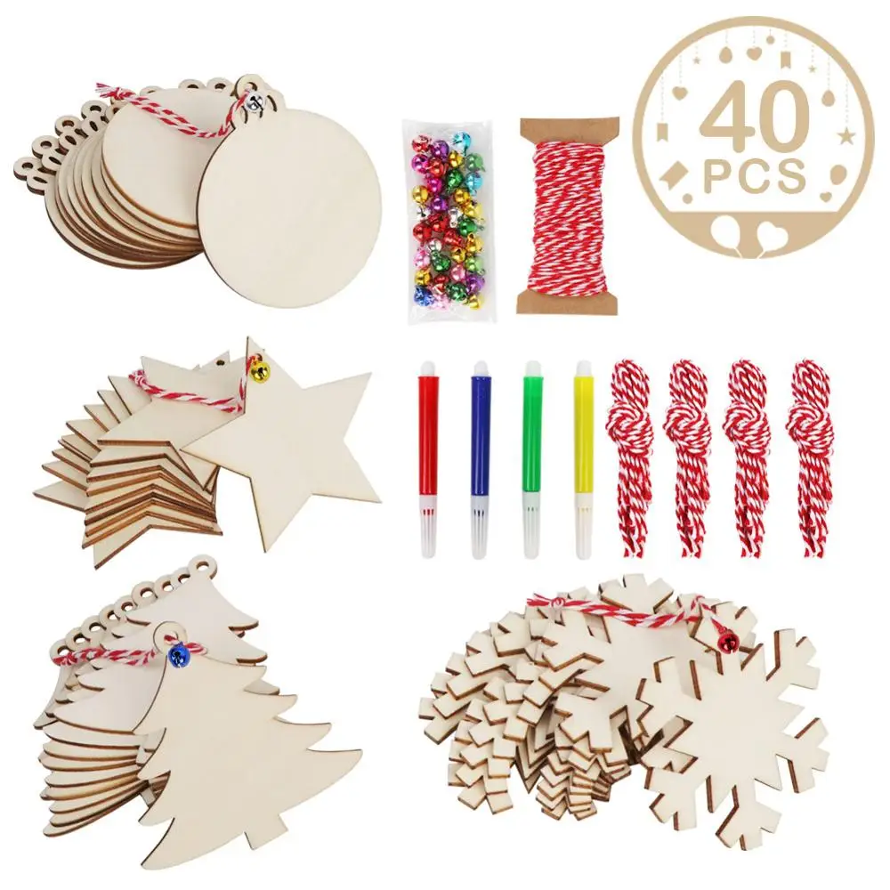 OurWarm 40 шт. деревянные украшения для скрапбукинга звезда дерево снежинка круг Форма Дерево DIY ремесло Рождественская елка подвесной кулон