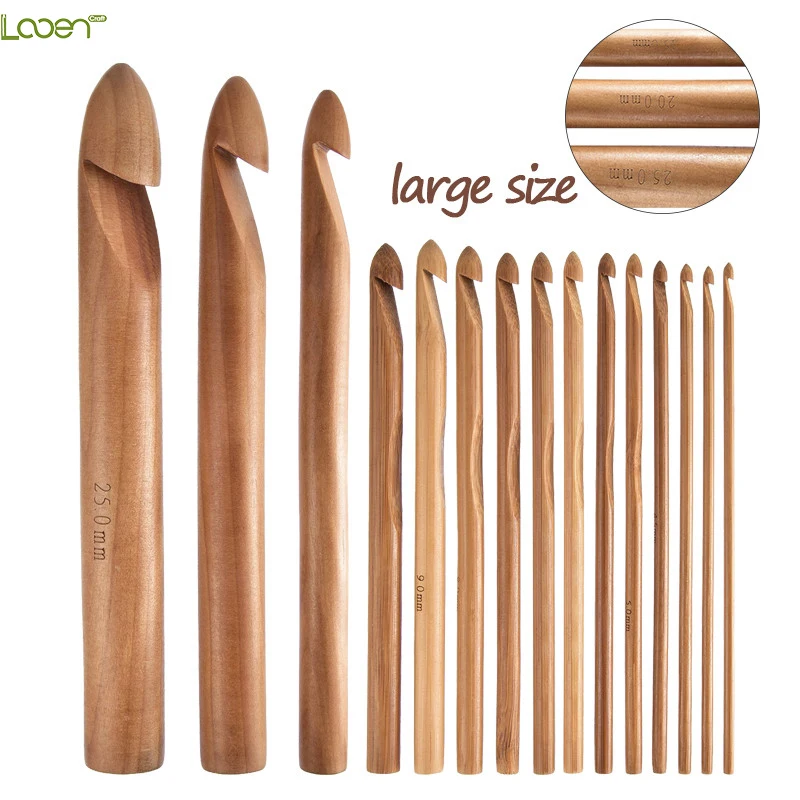 Looen 15 Mix бамбуковый вязальный крючок набор 3,0 м-25,0 мм огромные размеры для вязания крючком иголки-Крючки для вплетать в пряжу инструменты для вязания