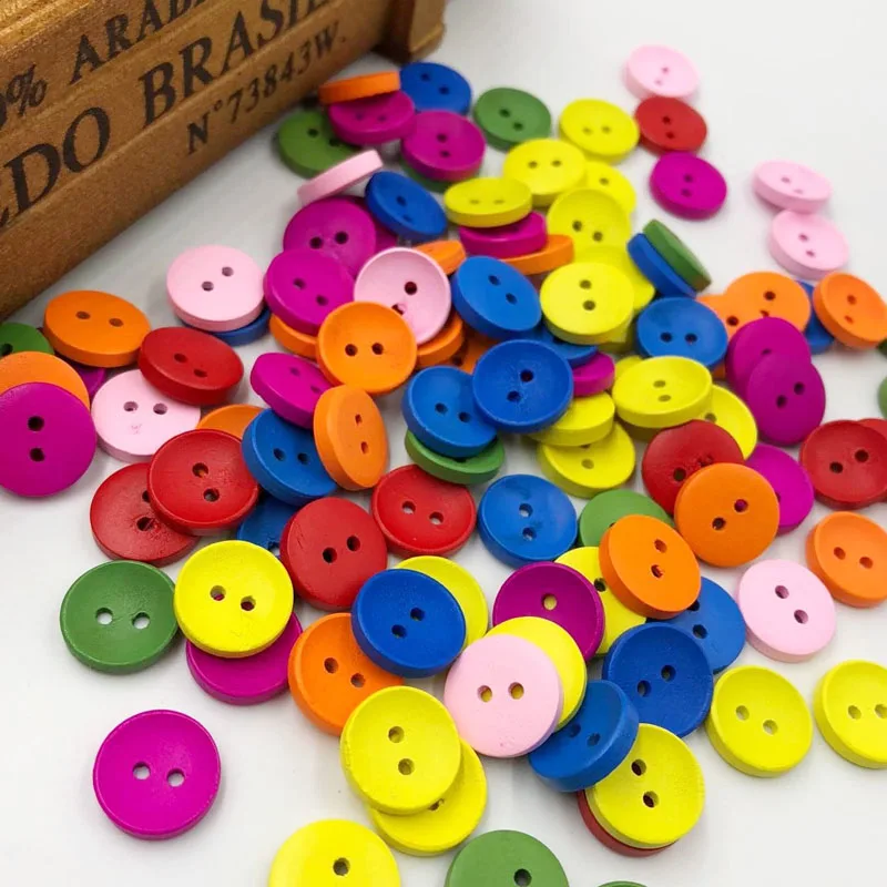 Разноцветные 10/50/100 шт 15 мм 2 круглые отверстия деревянные пуговицы Fit пошив скрапбукинга поделки и украсить WB189