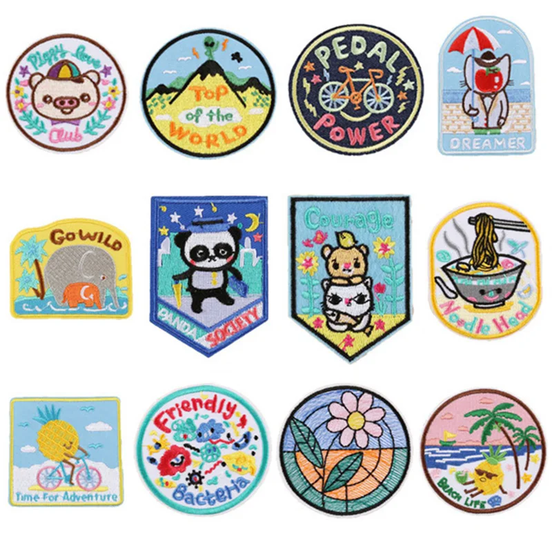 Панда, слон, ананас, кот, милый мультфильм, вышитые нашивки, железо, аппликация, вышивка, цветок, нашивки, сделай сам, Значки для одежды