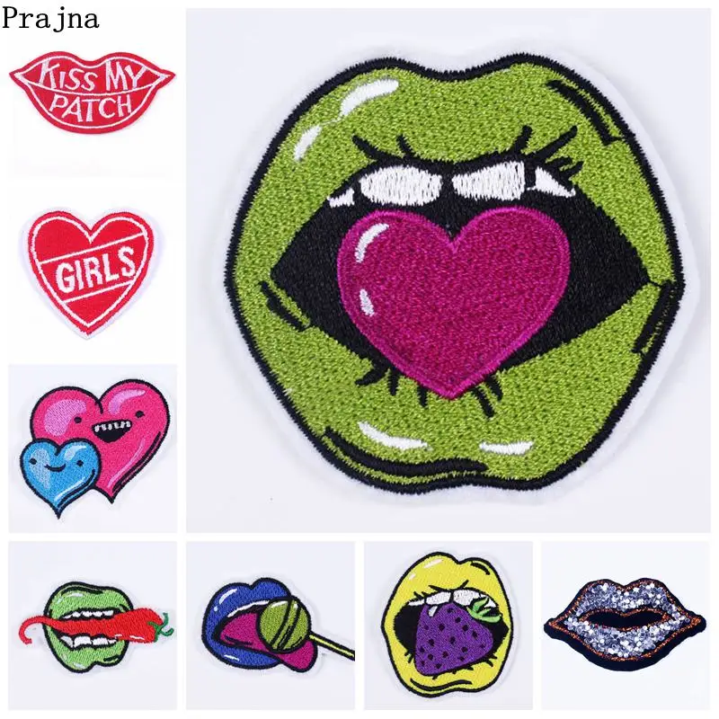 Prajna панк утрированные губы нашивки DIY Вышитые железные нашивки для одежды странные вещи полоса куртка с аппликацией одежда