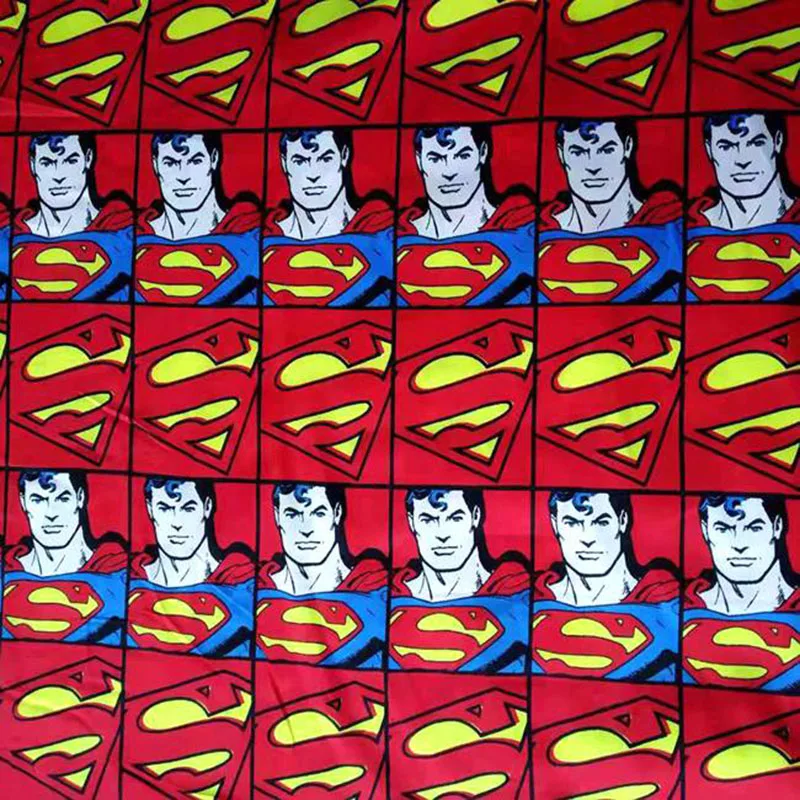 Красивый хлопковый стеганый лоскутный вышитый материал с рисунком Супермена, атласная ткань «мстители», одежда для мальчиков «сделай сам»