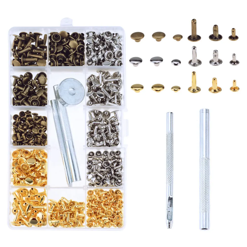 300 наборов, 3 размера, заклепки, двойная крышка, заклепки, трубчатые металлические шпильки с плоскогубцами, набор для фиксации, инструменты д...