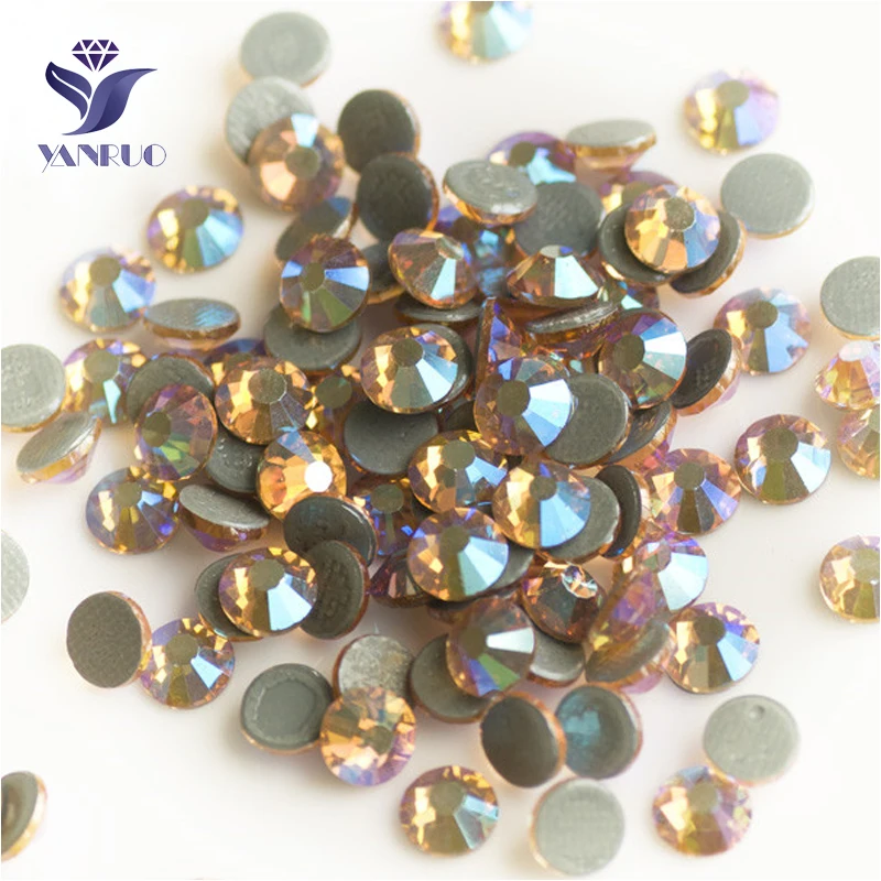 Yanruo 2058HF Все Размеры Lt. Персик AB Кристалл стрейч-планка для горячей фиксации стразов Стразы для Одежда ручной работы