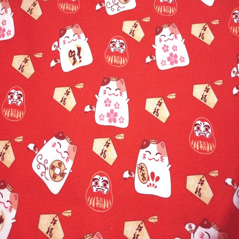 Красивая красная цифровая печать на холсте ткани для сумки красный праздничный счастливый кот напечатанный полиэстер ткань шитье лоскутное Подушка DIY