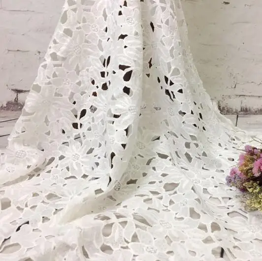 1 ярд лист узор Высокое качество нигерийские Свадебные африканские кружевные ткани самые популярные гипюровые шнур кружевная ткань для веч...