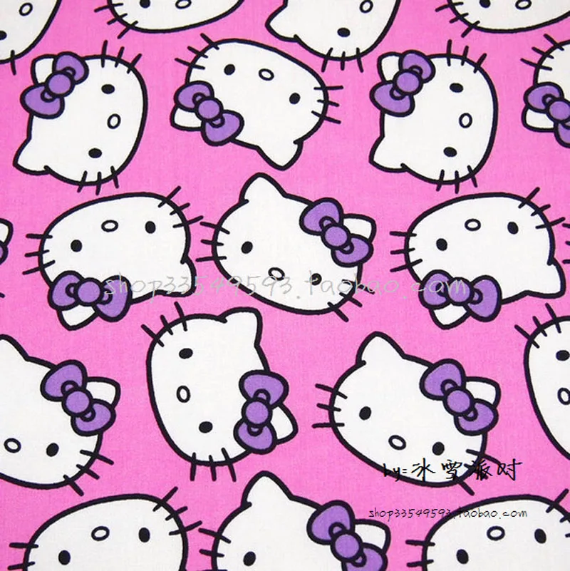 140*50 см, 1 шт., ткань hello kitty, 100% хлопок, ткань Kitty, пэчворк, фиолетовая, рисунок hello kitty и бант, ткань с принтом «сделай сам», швейная одежда для малышей