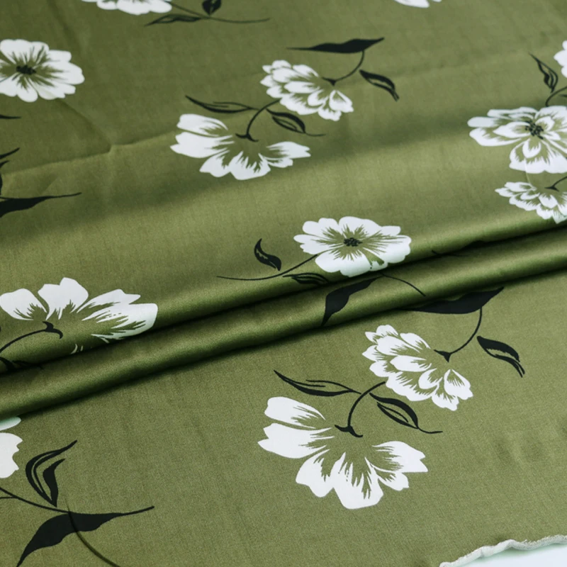 100 см * 148 см супер мягкий вискозный сатин материал шармёз армейский зеленый цветок