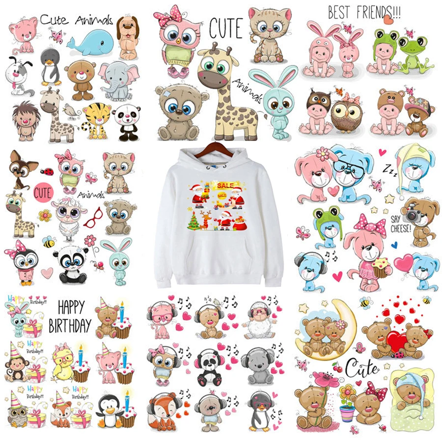 Виниловые наклейки для одежды с мультяшными животными, накладки с изображением жирафа, волка, совы, утюги для самостоятельной передачи тепла