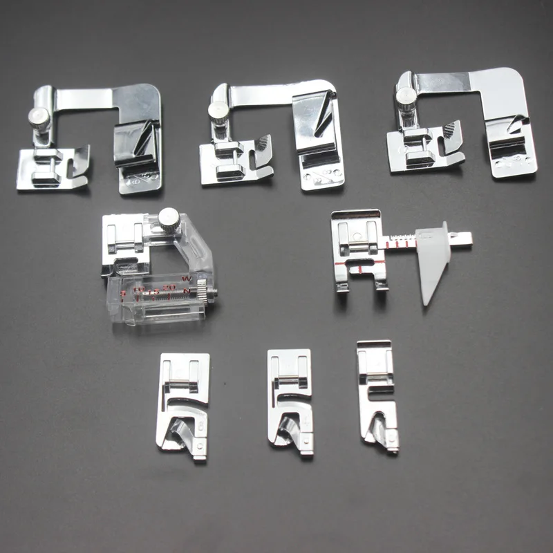 8 шт./компл./набор, тканевая полоска для завивки кромок, прижимная лапка для швейной машины, металлический широкий плоский шов, зигзаг, ОБЖИМНАЯ швейная машина, ножные костюмы