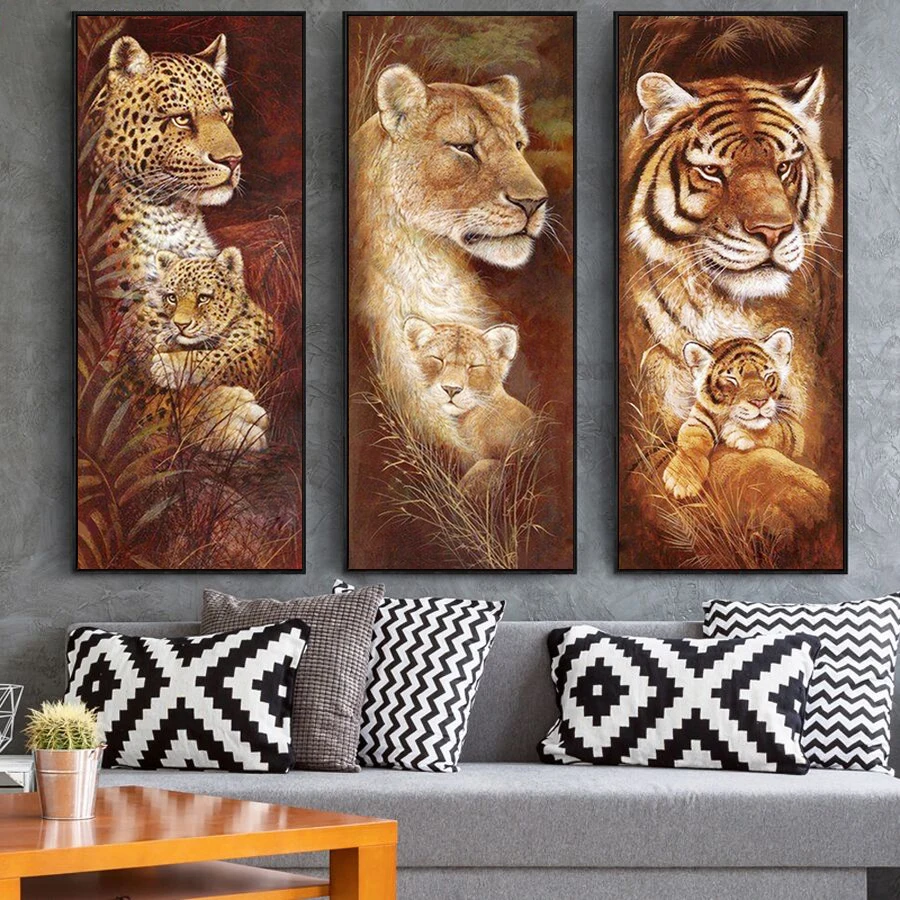 Diamond картина Полная площадь круглый дрель камень животных Тигр Жираф Алмазная вышивка Дикая жизнь Крест из горного хрусталя с кристаллами с...