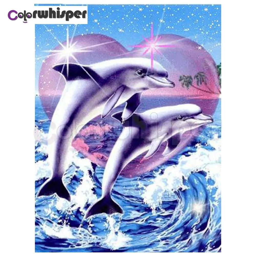Алмазов картина Полная площадь/круглый дрель 5D сердце дельфины, море Алмазная вышивка крестом с кристальной мозаикой Pic Z202