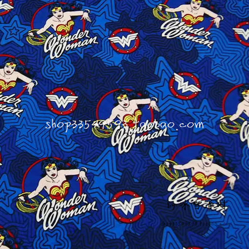 Широкий 140 см синий чудо-женщина печати ткань 100% Хлопковое одеяло детская ткань лоскутное Швейные материалы для ручной работы женская одежд...