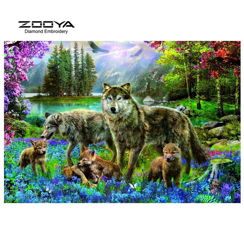 Zooya diamond Вышивка 5D DIY Алмазный живопись волк Семья лес алмазов картина Rhinestone Вышивка крестом украшения cj320