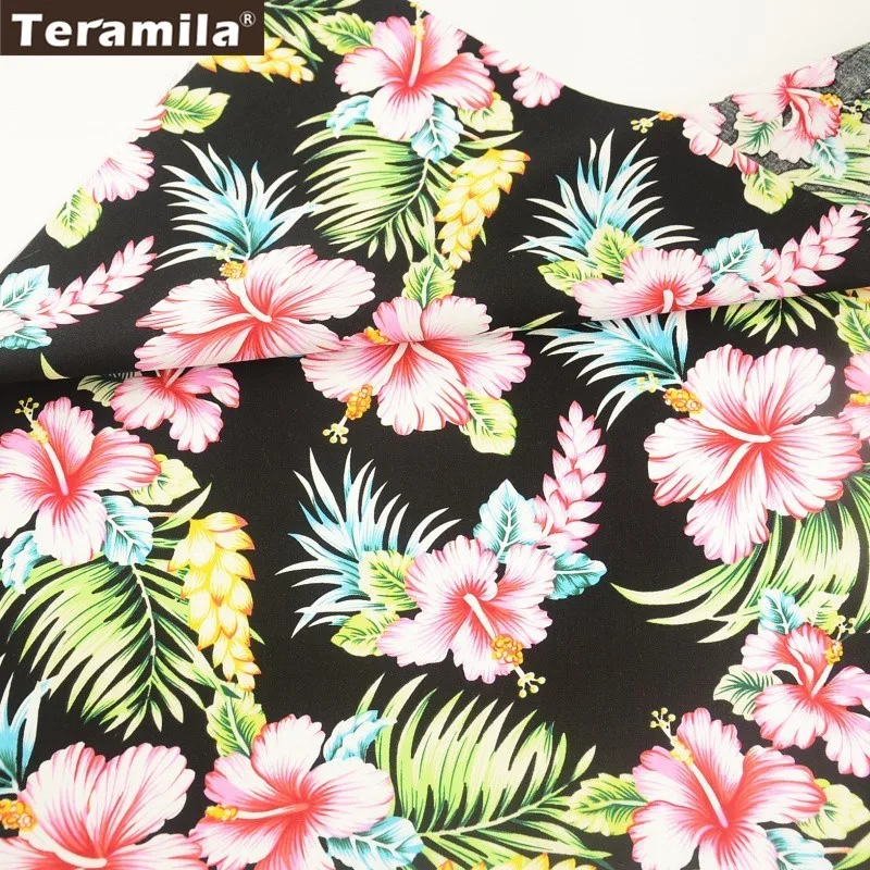 Хлопок teramila Поплин Ткань с цветочным принтом дизайн черный домашний текстиль детская ткань для вышивания кукол метр ремесла лоскутное