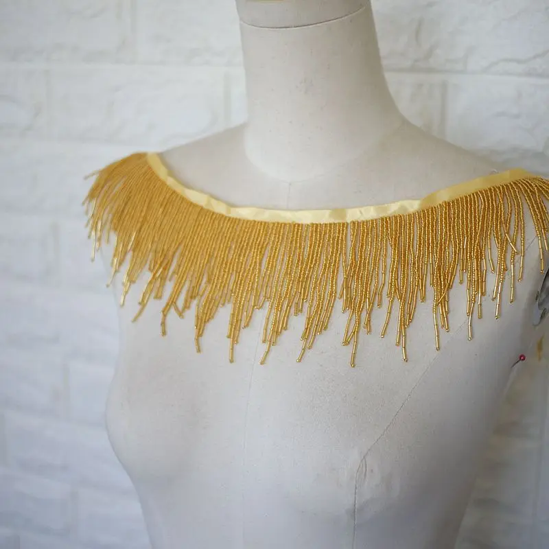 Золотая бахрома бисер кружевной отделкой костюмы платье аксессуары жемчуг кисточкой бисером кружевной отделкой Ткань аппликация нашивки