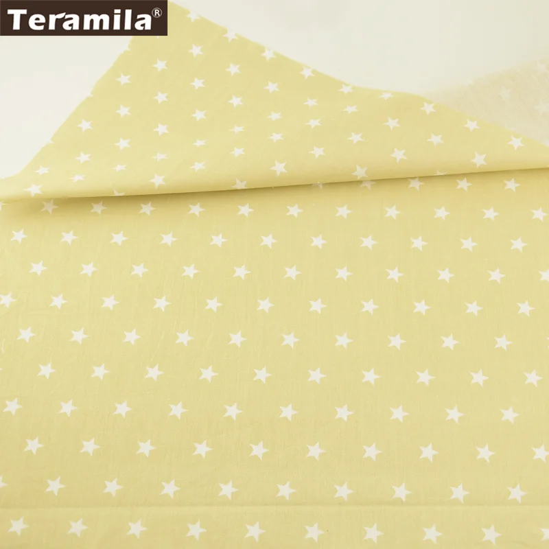 Teramila ткани немного звезды дизайн светло-желтый хлопок саржа ткань для вышивания кукол текстильные постельные принадлежности для дома лист ...