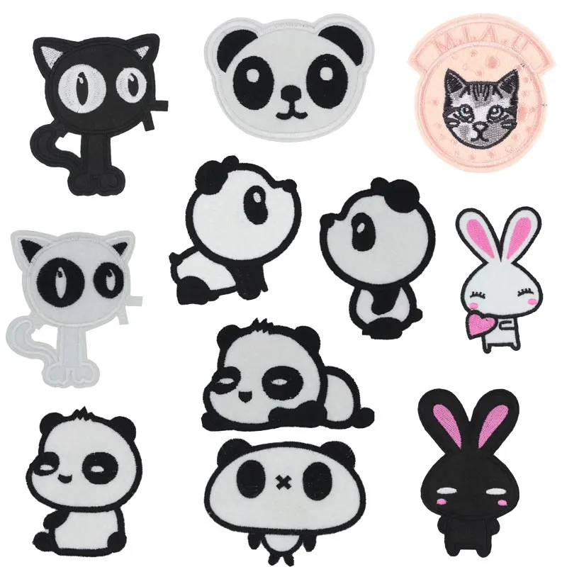 Наклейки с изображением кота панды, кролика, животных, цветов, сделай сам, железо, одежда, теплопередача, аппликация, вышитые аппликации, ткань