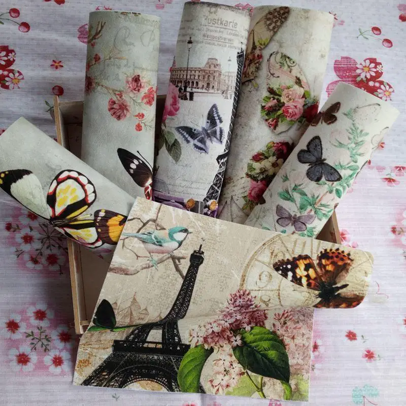 Ретро Бабочка цифровой печати лоскутное Франции башня ткань 100% хлопок ручная окрашенная DIY ткань домашнего декора 18*18 см 6 шт. SL-121