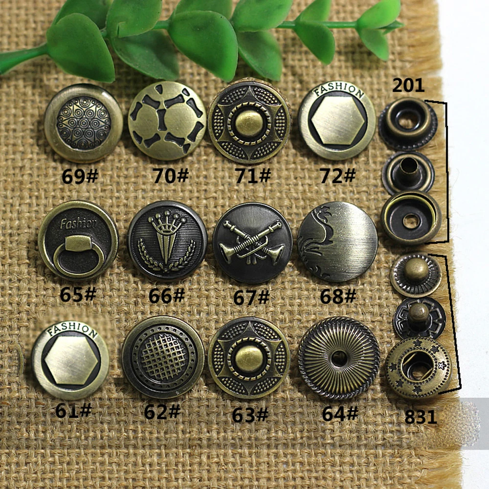 50 компл./лот бронзовый цвет металла одежда кнопки Сделай Сам кожевенное ремесло мешок декоративный аксессуары