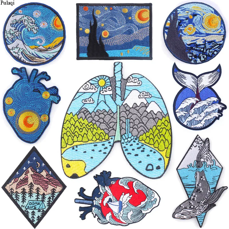 Пулаки пустыня патч волны горы патчи для одежды путешественник панк Сердце Ван Гог полосы вышитые патчи для одежды