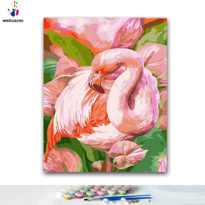 DIY картина по номерам Розовый фламинго в траве картины с наборы 40x50 оформлена