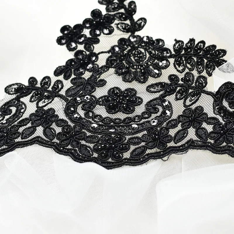 1 ярд черный жемчуг вышитые кружева аппликация из бисера Кружева Планки Свадебные украшения платье DIY Sewinig аксессуары