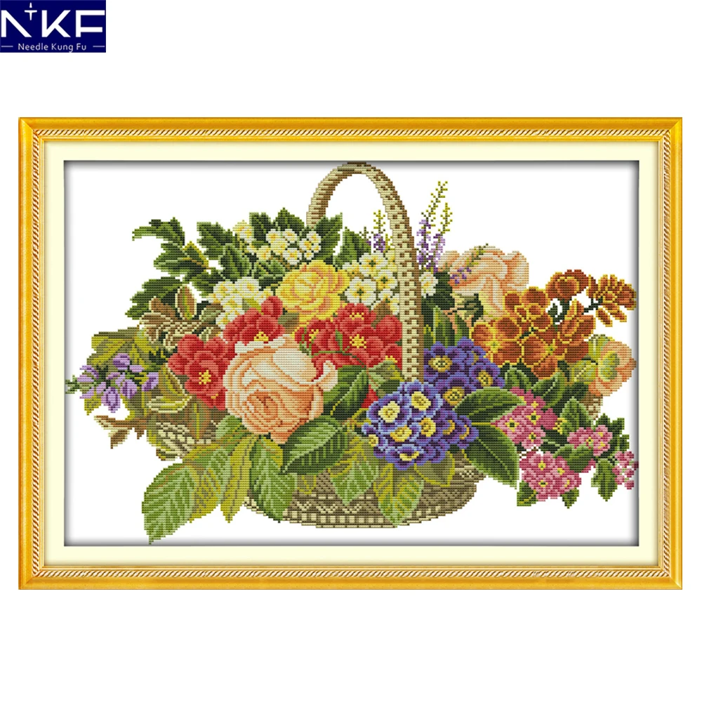 NKF корзина с цветочным узором ручной работы судов рукоделие вышивки крестом Набор Вышивка комплект печатных Дизайн шить Домашний Декор