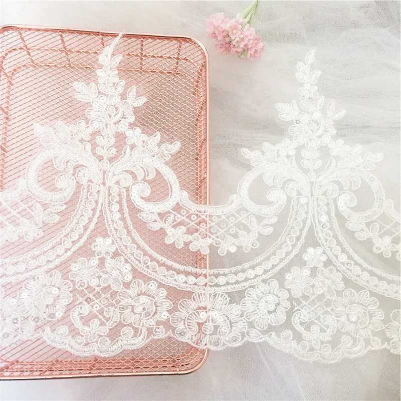 3 ярдов/серия Белый блестками кружева блестками свадебное кружевное платье ткань ширина 23 см. GRL0540