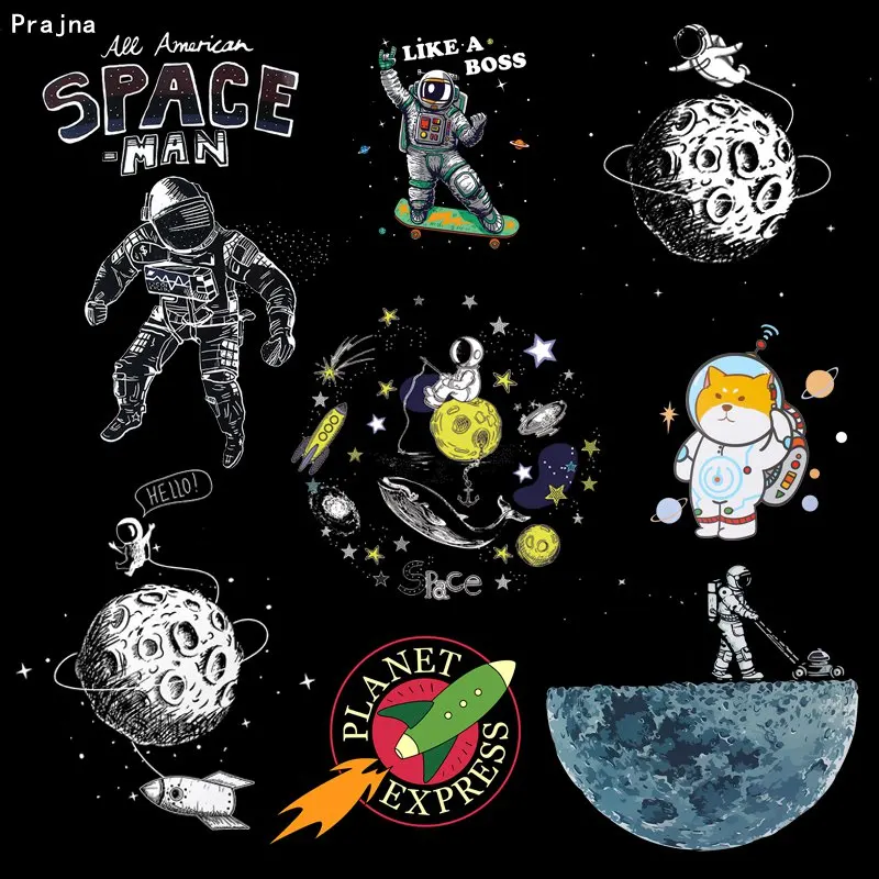 Прайна НЛО космическая луна ракета патчи Железный На переноске для мужчин футболка толстовки Гладильные наклейки термо патчи для одежды DIY