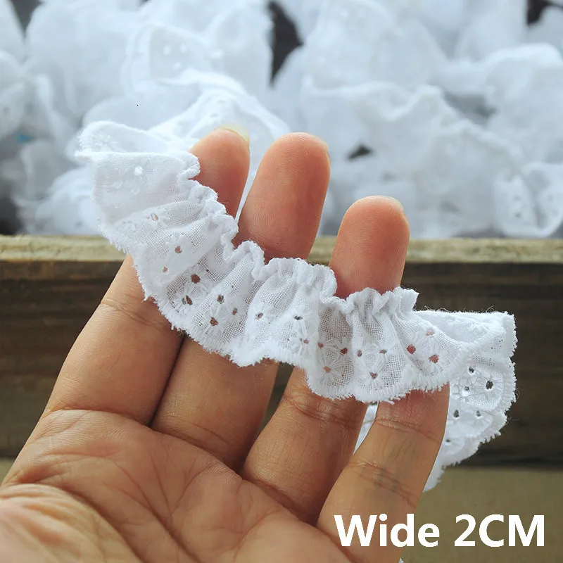 2 см широкий белый хлопок вышитые цветы 3d кружевная лента эластичная оборка отделка воротник декольте DIY швейная аппликация из гипюра Декор