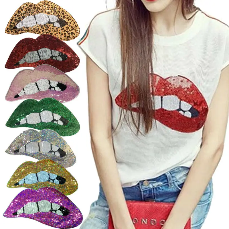 DIY железные нашивки стикер вышитый значок аппликация Ткань Ремесло блесток губы пришить