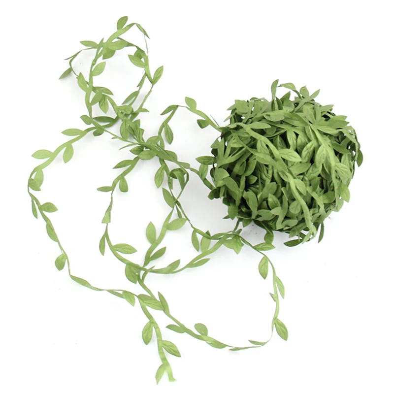 Искусственные зеленые листики в форме листьев, 10 метров, для свадебного декора, рукоделия, венок, подарок для скрапбукинга, искусственные цветы